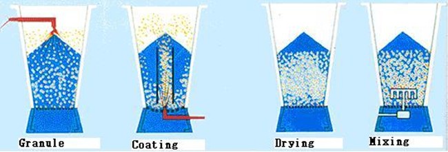 · The mixing,Granulating and drying can be completed in one step inside the machine;