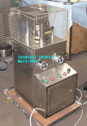 Meeting the GMP standard,ZP-5,7,9 type tablet presses are ideally-designed to press granular raw materials into round,non round tablets for laboratory use for laboratory use for research and development or small-scale production in pharmaceutical,chemical and food industry,The working part is enclosed by transparent windows so that press condition can be observed clearly and the windows can be opened .Cleaning and maintenance is easier .The machines feature small volume,low weight,low noises and tidy appearance .The alarming system and vacuum cleaner are attached .The speed adjustment of the driver is controlled by the frequency conversion device.