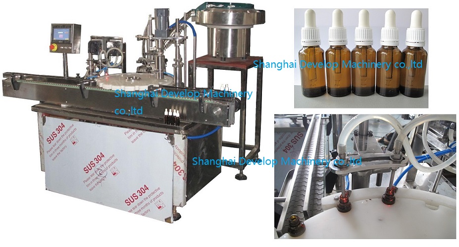 This machine is liquid filling & capping machine.It is suitable for all kinds of bottle,such as round bottle,square bottle.The design is advanced and the structure is intelligent.The equipment has the function: no bottle no filling,no bottle no capping.The machine can be used alone,also man can combine with other machines into a production line.It fully meets new GMP requirements.